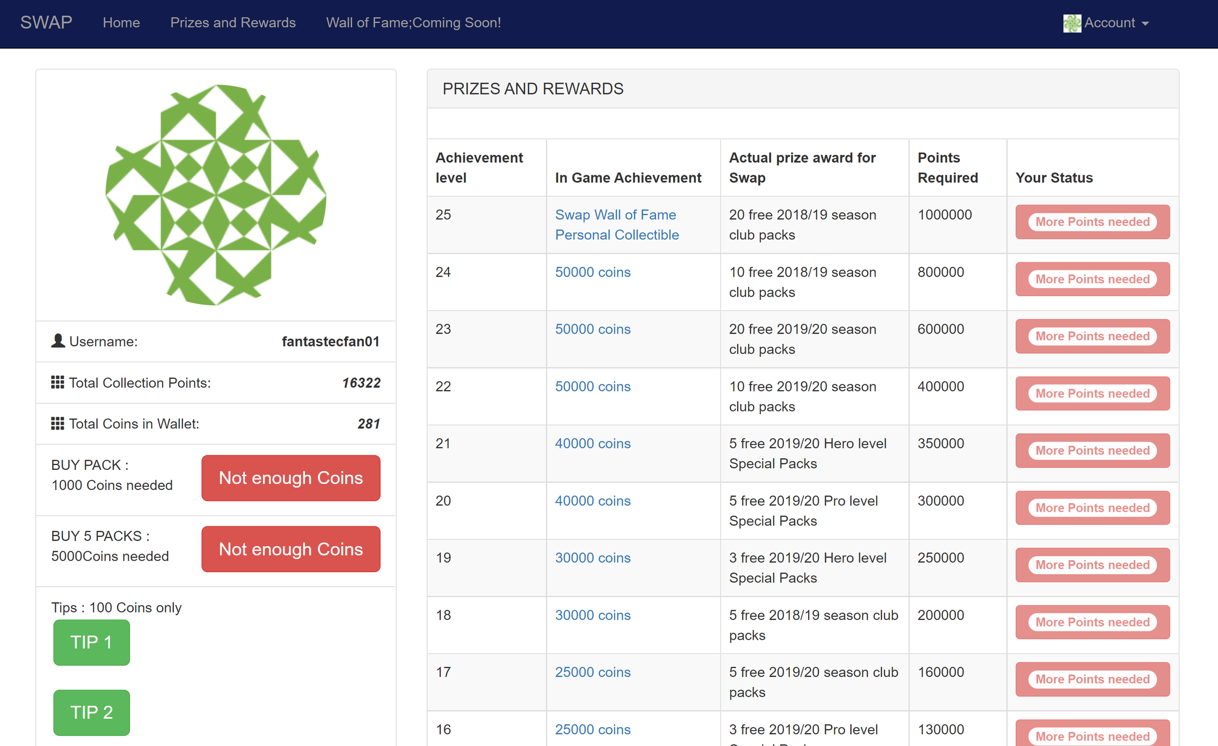 In 2020 we wanted to introduce a Rewards feature to the Fantastec SWAP app which could earn users an array of benefits like free or special edition NFTs, merchandise or entry to competitions for VIP football related experiences.
