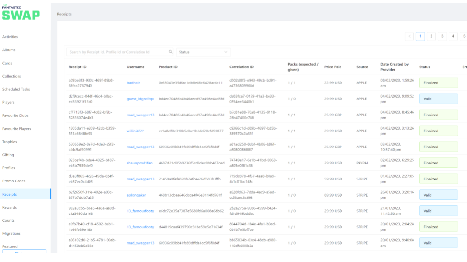 This meant we needed a user friendly CMS (Content Management System) to allow different stakeholder teams such as production or marketing to be able to set up clubs, players and teams, and to create collections, mint collections, investigate users, user purchases, set up Rewards features and so on.